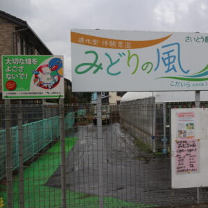 福祉農園でも、障碍者が定期的に農作業講習を受けて、将来就労できる技術を身に着けることを目的に、地元の障碍者就労支援事業所(NPO法人ぶどうの木)と連携して運営しています。150㎡程の広さの農園で、毎週水曜と金曜の午前中を作業日として、シニア農園と同様に地元の若手農家が栽培指導に当たっています。